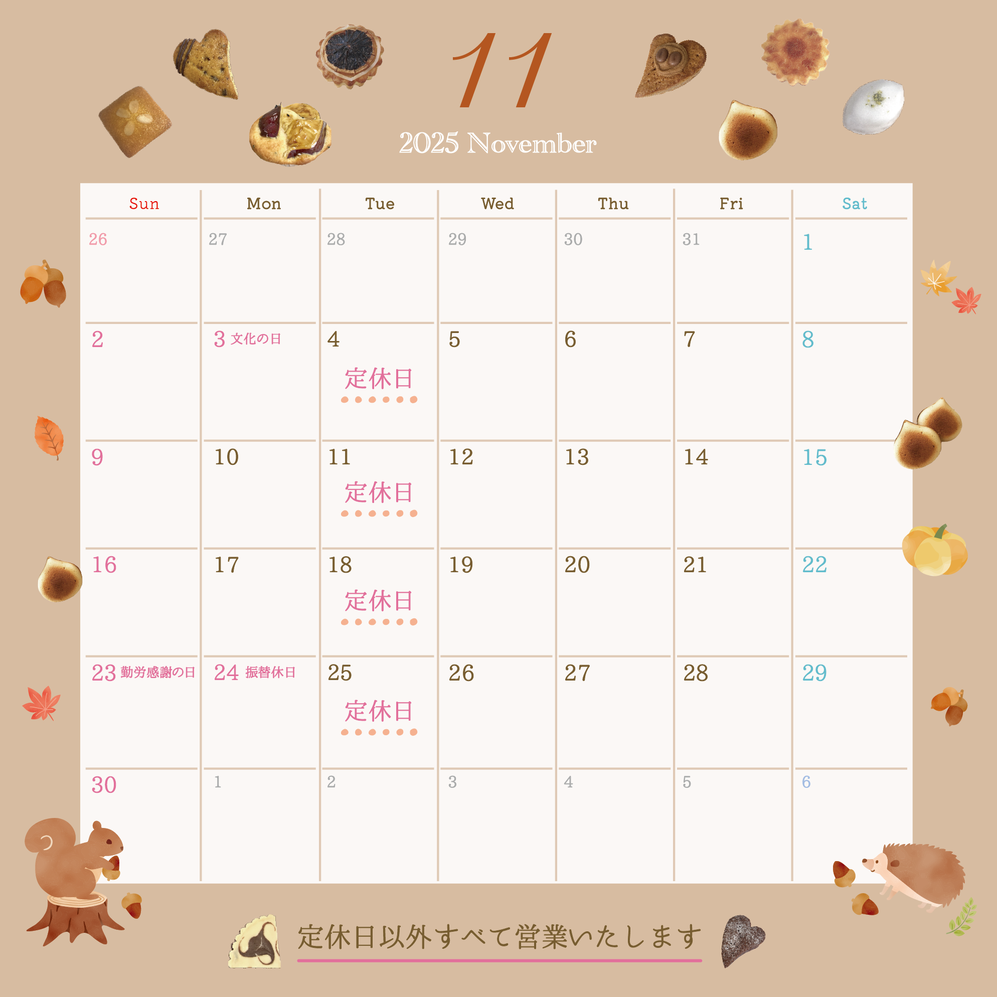 🌿11月営業日のお知らせ🌿