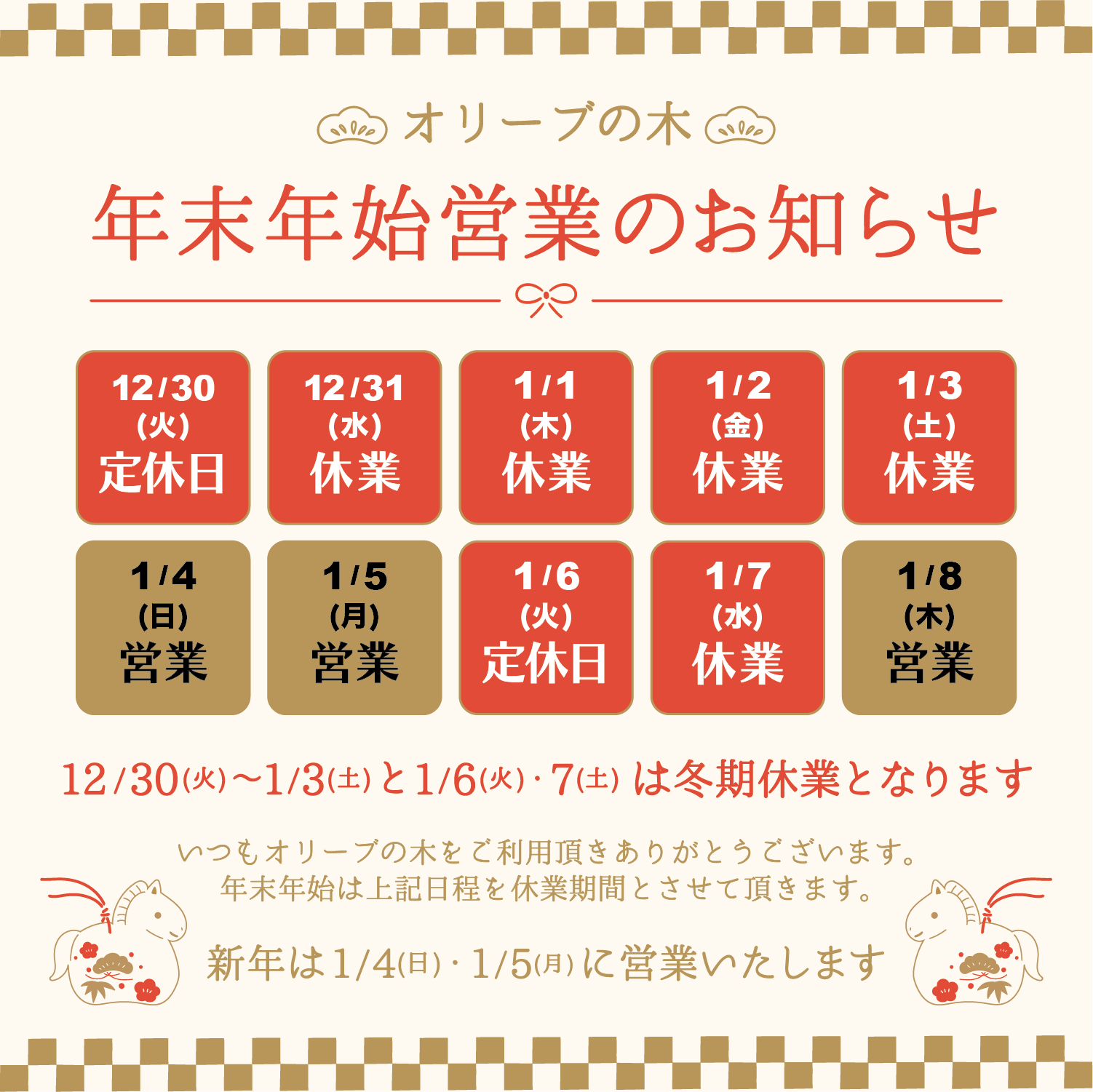 年末年始営業日のお知らせです🎍